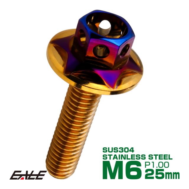 M6×25mm P1.00 2色 ワイドフランジスター ボルト ワイヤーロック穴付き 六角ボルト ステンレス削り出し ゴールド&焼きチタンカラー TB1004