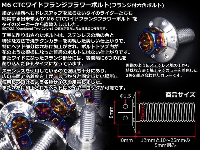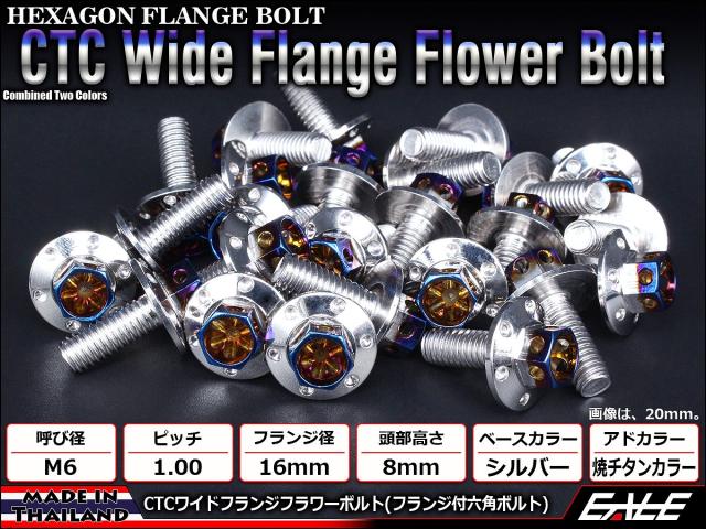 M6×15mm P1.00 2色 ワイドフランジフラワー ボルト ワイヤーロック穴付き 六角ボルト ステンレス削り出し シルバー&焼きチタンカラー TB0972