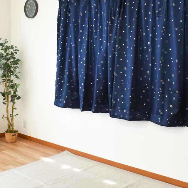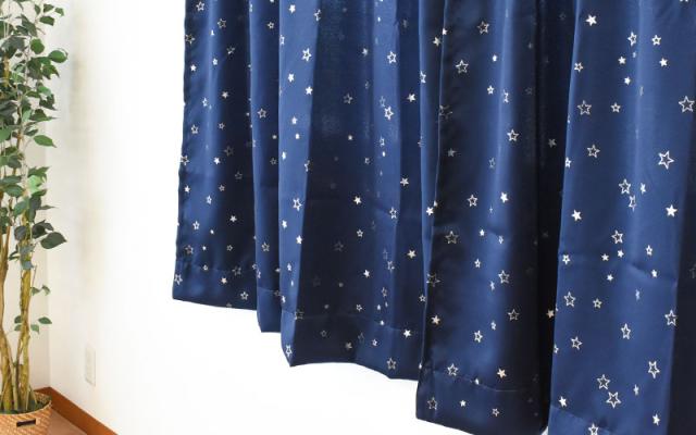 [ keyword | カーテン ドレープカーテン スター 星柄 ウォッシャブル 遮光性 ネイビー ]