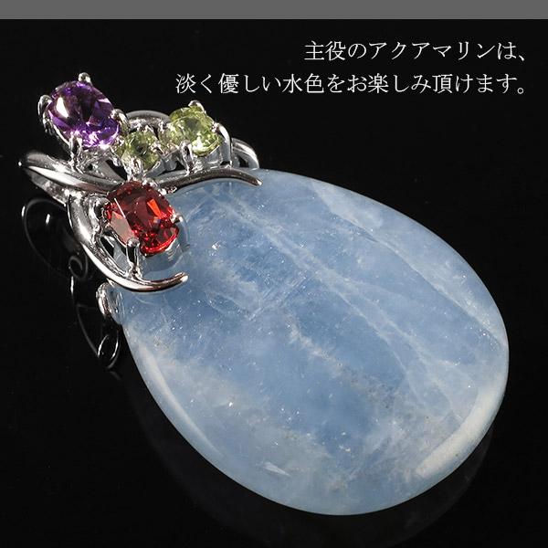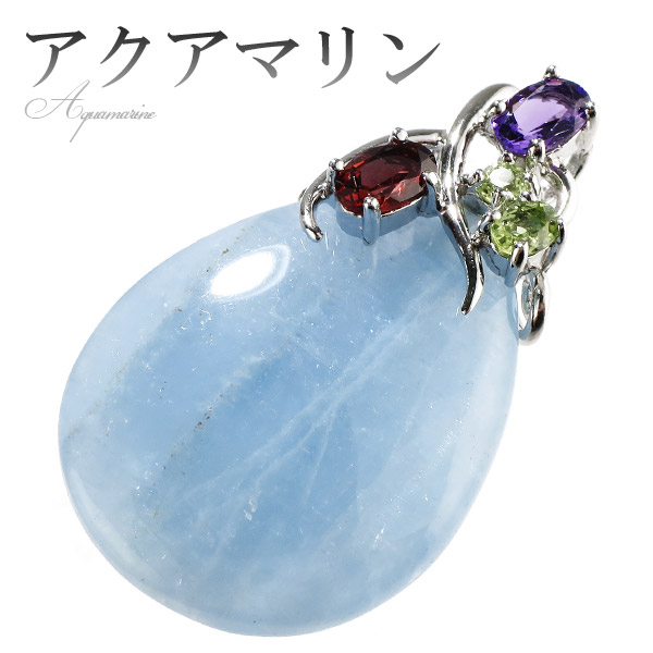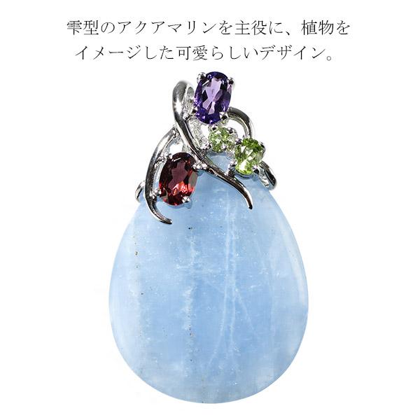 アクアマリン シルバー ペンダントトップ ペンダントヘッド 雫型 3月 誕生石 天然石 植物 植物モチーフ アメジスト ガーネット ペリドット