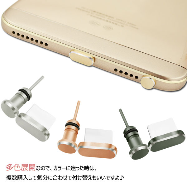 イヤホンジャックとUSB Type-C用コネクタの専用キャップです!イヤホンジャックとType-Cコネクタに挿すだけで、あなたのスマートフォンをシンプルでさりげなく、クールにアピールできます!アクセサリーとしてだけではなく、スマートフォン内への塵、埃、水滴等の侵入のも防ぎます!メタリックな輝きとそのサイズ感がスマホとの一体感を美しく演出してくれます♪イヤホンジャックピアスはスマホだけではなく、タブレットPC、携帯ゲーム機、オーディオプレイヤー 等に付けてもOK!多色展開なので、カラーに迷った時は、複数購入して気分に合わせて付け替えもいいですよ♪