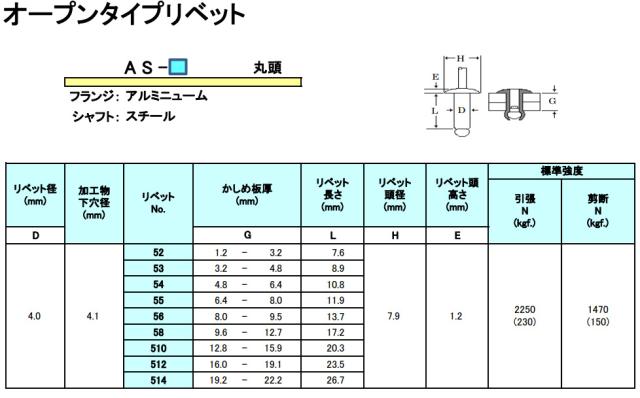 ブラインドリベット アルミ スチール リベット長13.7mm 頭径7.9mm 200入 4800-AS-56S 友渕製作所