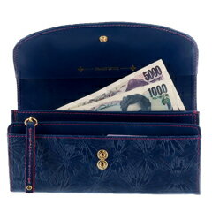 まるでガラスに描いたような大柄の花をたくさん散りばめた、染色にも拘った長財布。