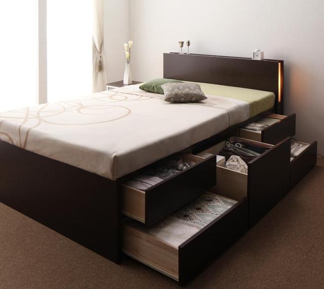 収納ベッド/収納付きベッド/チェストベッド/マットレス付き/マットレスセット/ライト付き/照明付き
