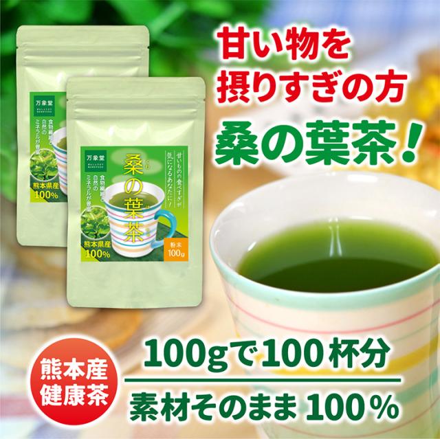 桑の葉茶 パウダー 100g×2袋セット 国産 粉末 桑茶 効能 青汁 くわ茶 糖質 無農薬 栽培 熊本県産 カフェインレス 送料無料
