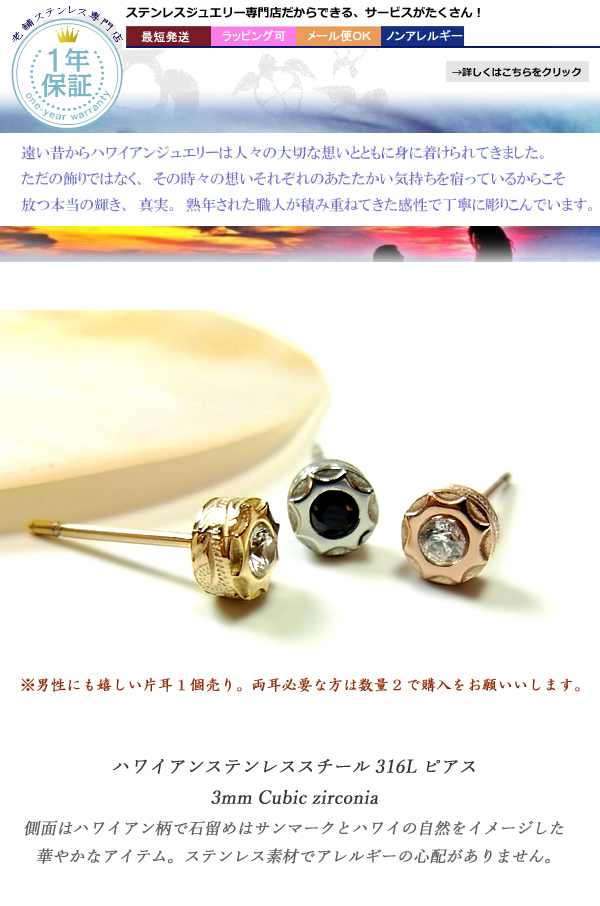 【片耳用】ハワイアンジュエリー CZ サンマーク ピアス レディース メンズ 誕生日 スチールシルバー ラッピング対応 アレルギー対応