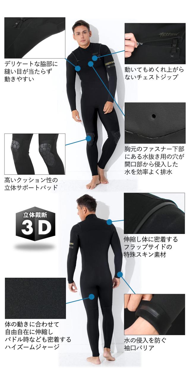 FELLOW ウェットスーツ フルスーツ メンズ チェストジップ 3mm サーフィン ジャーフル SUP 日本規格