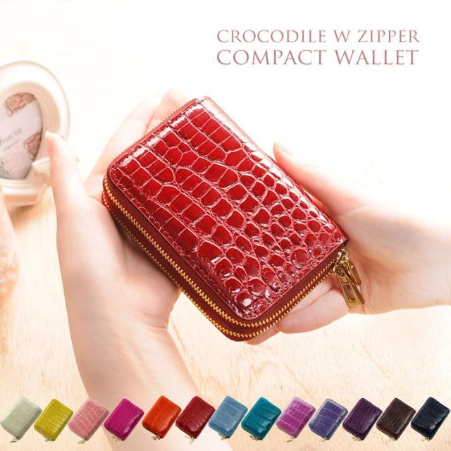 クロコダイル ミニ財布 コンパクト 小銭入れ コインケース レディース キャッシュレス ラウンド Wファスナー シャイニング ヘンローン 全20色(No.06001055)