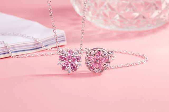 ネックレス 桜 さくら ピアス ピンクダイヤ レディース czダイヤ シルバー925 プラチナ仕上げ 人気 春 妻 彼女 プレゼント