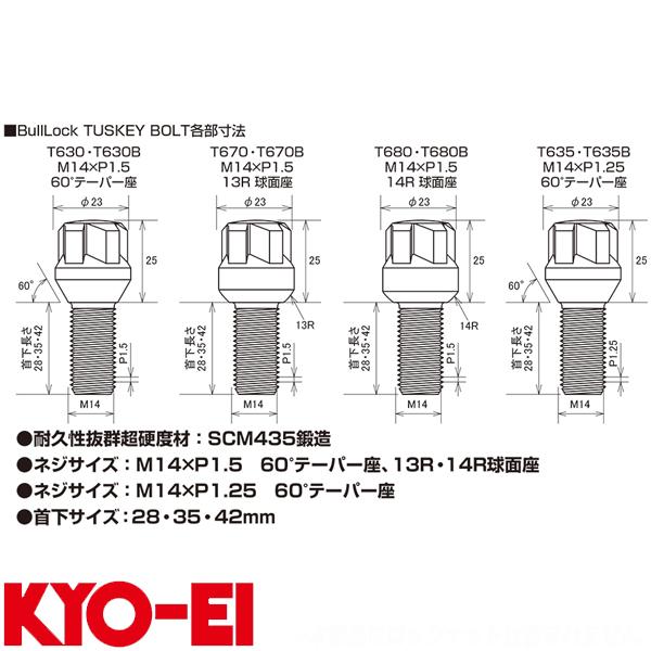 KYO-EI ロックボルト ブルロック タスキー ボルト 輸入車用 M14×P1.5 R13球面 4個入 クローム T670-42
