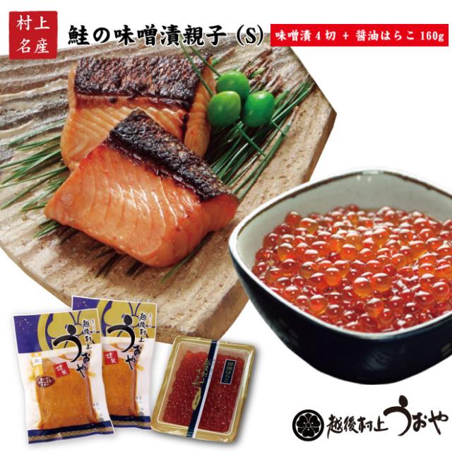 鮭の味噌漬親子セットS (鮭の味噌漬4切とはらこ醤油漬160g) 鮭/シャケ/いくら/切身/切り身/漬け魚/越後村上うおや/村上/新潟