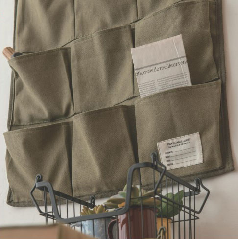 ウォールポケット ヒッコリー コットン W48 H56cm | インテリア ディスプレイ 雑貨 生活 ディスプレイ雑貨 インテリア雑貨 生活雑貨 小物 小物入れ 壁紙 壁飾り 壁掛け ウォールデコ オシャレ おしゃれ
