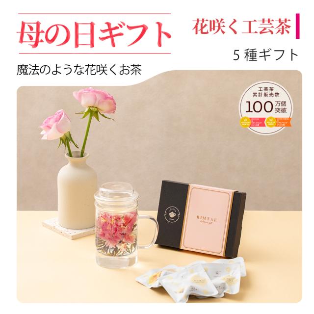 母の日 リムテー ギフト カーネーション 花 咲く 花茶 工芸茶5種 詰め合わせ プレゼント フラワー ジャスミン茶 テーブルフラワー 卒業祝い 入学祝い 卒業式 プチギフト 送料無料 誕生日