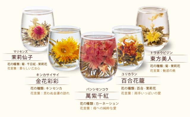 お湯で花咲く工芸茶5種セット。