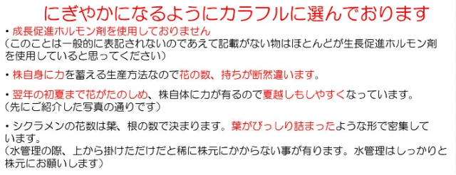 株自身に力を蓄えて開花まで育てたシクラメンなので毎年、春まで楽しめるとして大好評です