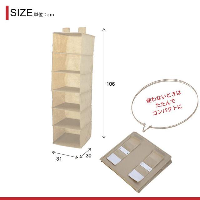 吊り下げ収納 6段 収納ボックス 吊り下げ ラック クローゼット ハンガーラック 衣類 衣服 収納 カバン 鞄 バッグ 帽子 キャップ 小物