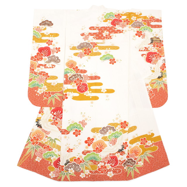振袖セット 白系 オフホワイト 松竹梅 桜 雲取り 紗綾型 絵羽柄 正絹 パールトーン加工 振り袖 ふりそで 着物セット 仕立て上がり 成人式 結婚式 販売 日本製