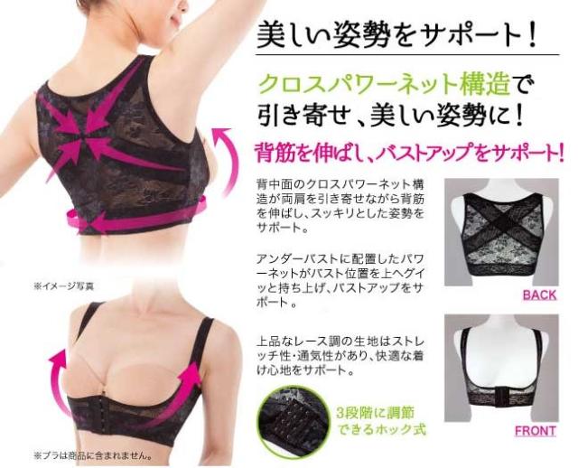 背中面のクロスパワーネット構造が両肩を引き寄せながら背筋を伸ばし、