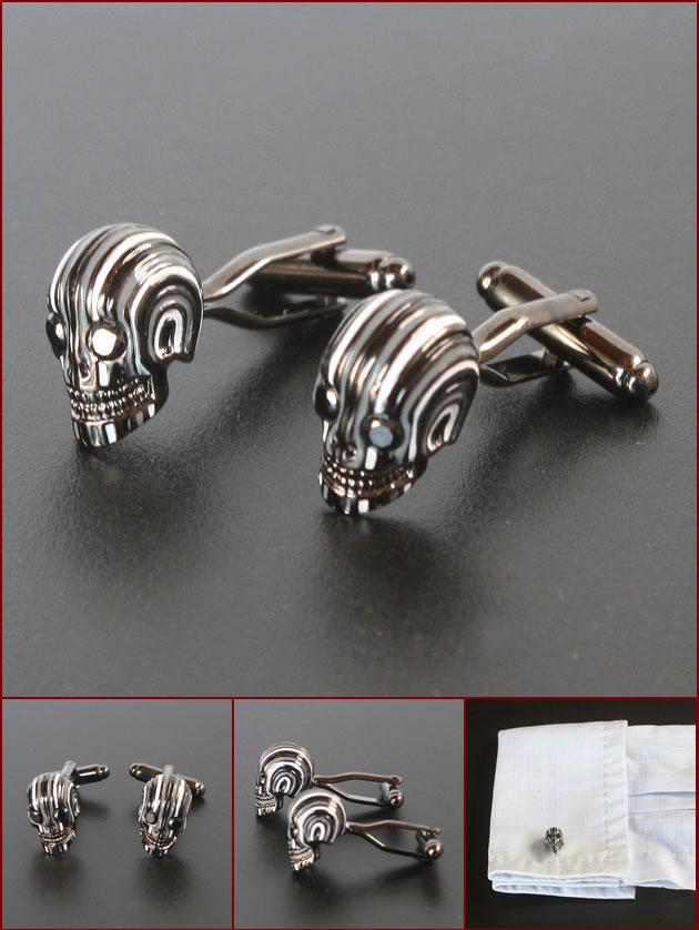 鎌倉カフス工房 ダークストライプスカルカフスボタン・カフリンクス メンズ cf2021