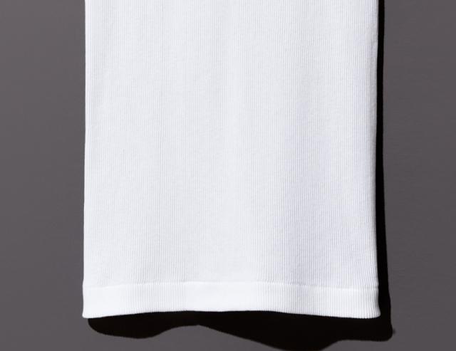 胴周りを一枚の布で仕上げた丸胴仕様。脇部分に縫製がないので着心地が良くスッキリとしたシルエットを演出しています。