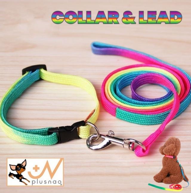 リード&首輪セット 2点セット 犬用 猫用 リード カラー 散歩紐 鈴付き 首輪 お散歩グッズ グラデーションカラー おしゃれ