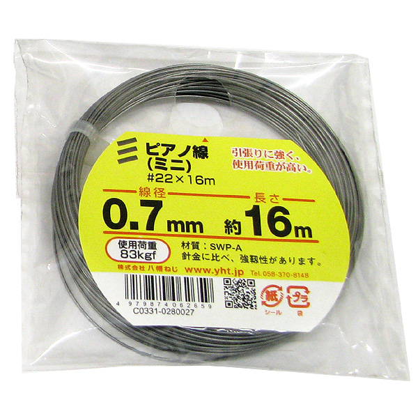 【メール便可】八幡ねじ ピアノ線 ミニ #22 線径0.7mm×長さ約16m