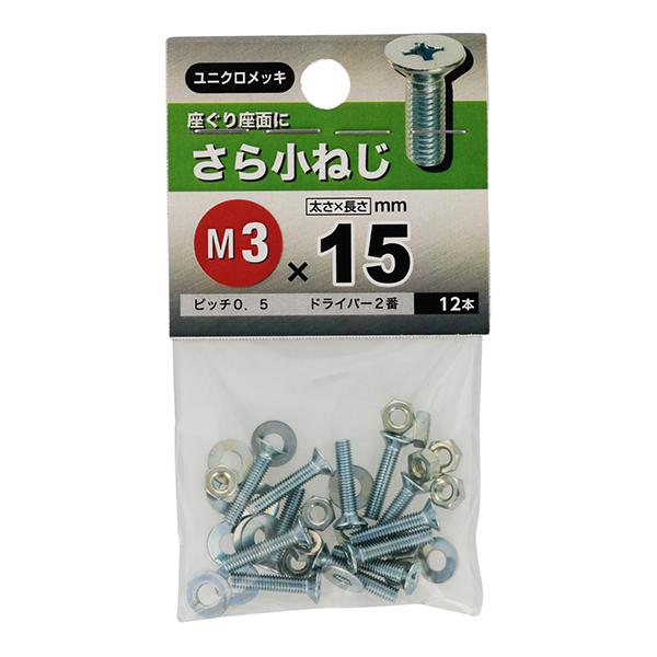 【メール便可】八幡ねじ さら小ねじ M3×15 12本入