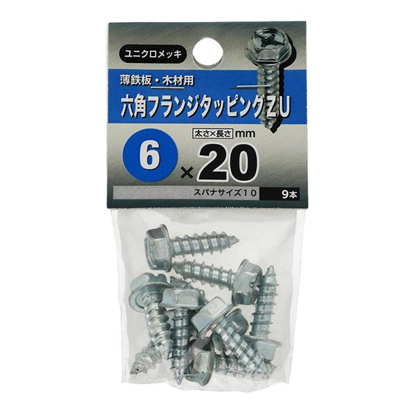【メール便可】八幡ねじ 六角フランジタッピング ZU 6×20 9本入