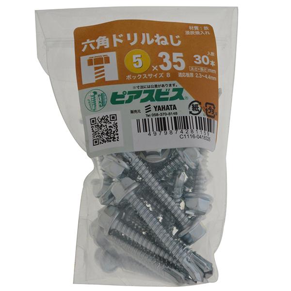 八幡ねじ 六角ドリルねじP 5×35 30本入