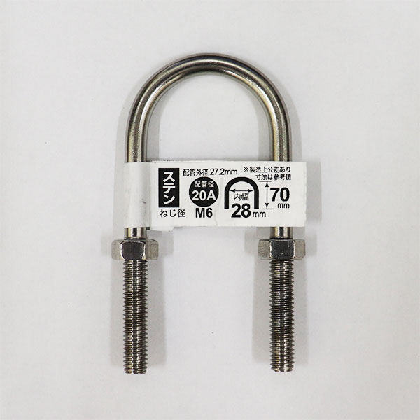 【メール便可】八幡ねじ ステン足長Uボルト 20A 6×70 ねじ径M6 内幅28mm 配管径20A