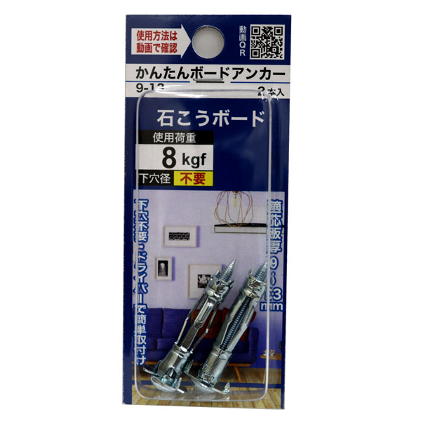 【メール便可】八幡ねじ かんたんボードアンカー 9-13 2本入 使用荷重8kgf 適応板厚9mm〜13mm