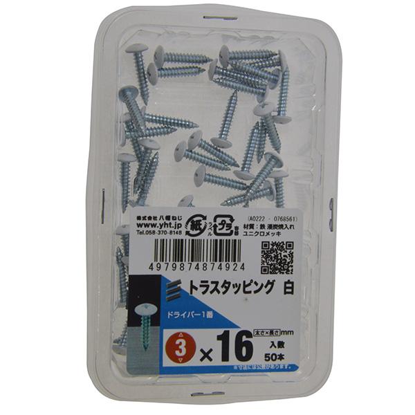 【メール便可】八幡ねじ トラスタッピング 白 3×16 50本入