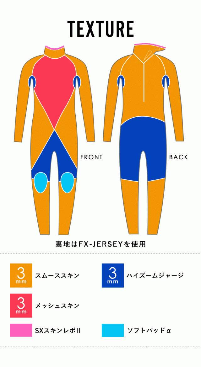 表面:スムーススキン+メッシュスキン+ハイズームジャージ