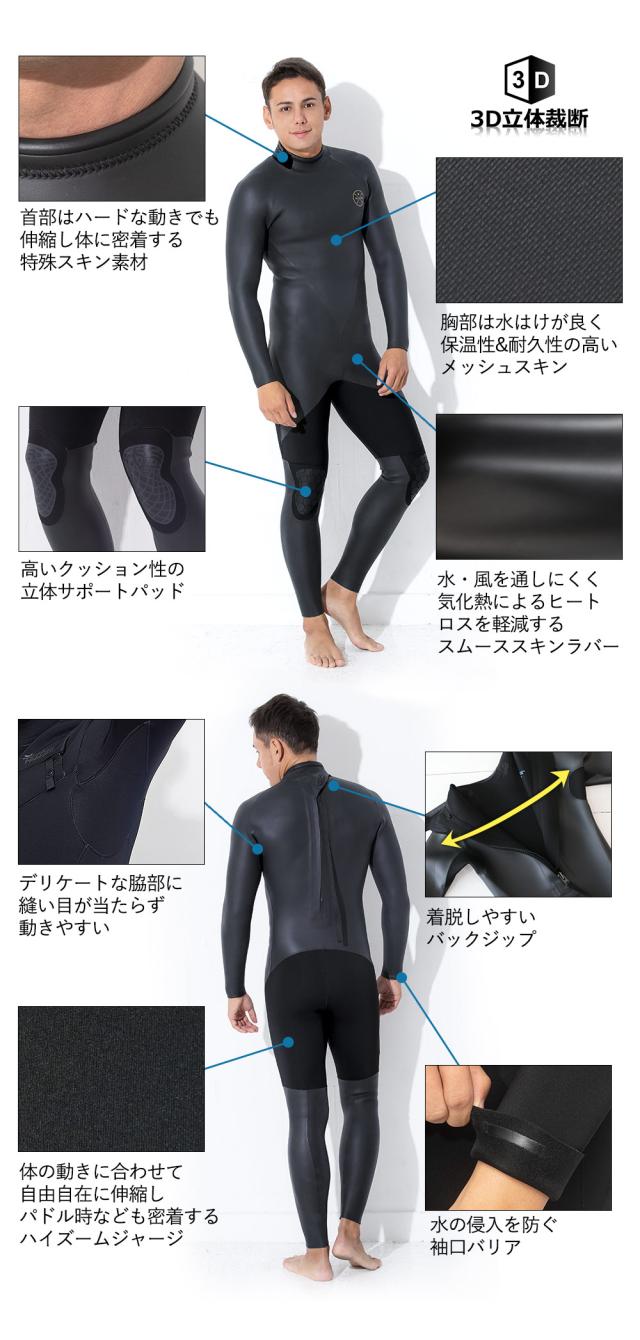 FELLOW ウェットスーツ スキンフルスーツ メンズ バックジップ 3mm ラバー サーフィン 日本規格