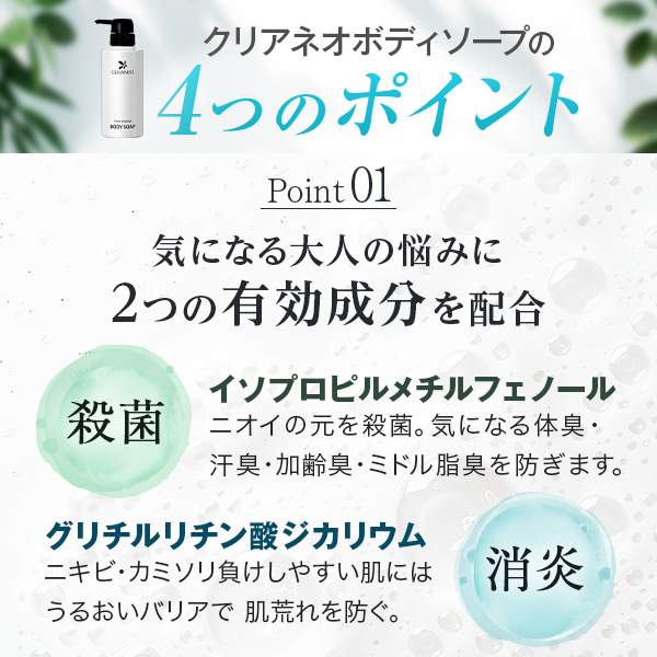 【公式】クリアネオ|【全額返金保証】送料無料 [ 医薬部外品] ボディソープ 300ml ×2本 足 子ども 泡 メンズ ボディウォッシュ 背中ニキビ 男性用 女性用 男女兼用 体臭予防 保湿 デオドラント さっぱり 加齢臭 皮脂汚れ いい香り しっとり