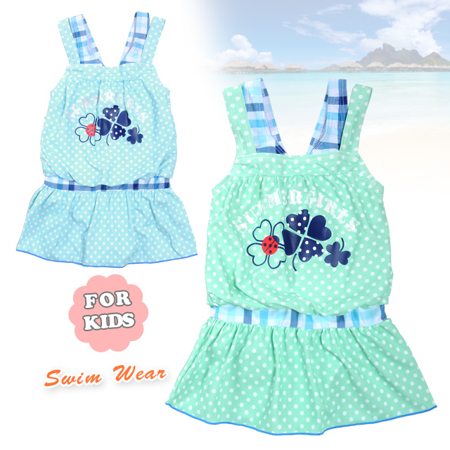 キッズ水着 女の子用ドット柄ワンピース水着 女児 子供 子ども ミニスカート 【メール便可】 No.sw2082