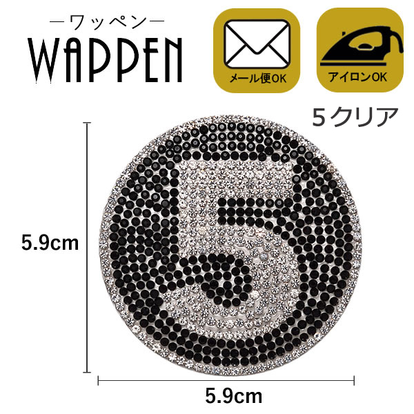 ワッペン 選べる2色 数字 5 アップリケ ストーンワッペン アイロン接着 縦5.9cm×横5.9cm ナンバー 5 キラキラワッペン母の日 プレゼント ギフト