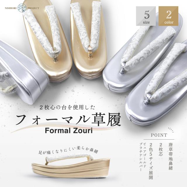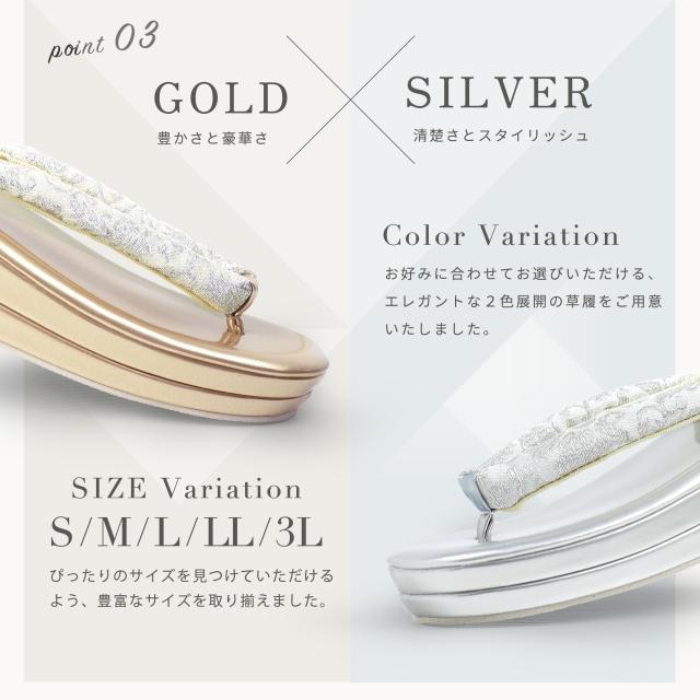 ローブデコルテ調 唐草の鼻緒の 2枚芯 フォーマル 草履 レディース 選べる 2色 5サイズ Sサイズ フリーサイズ Mサイズ Lサイズ LLサイズ 3Lサイズ 単品 金 銀 ゴールド シルバー フォーマル 結婚式 入学式 卒業式 お宮参り訪問着 留袖 振袖 留袖、訪問着 振袖に 二枚芯