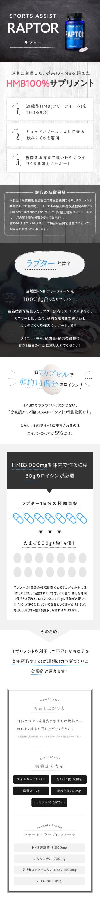 ハレオ プロテイン ラプター HALEO RAPTOR 210カプセル 宅配便