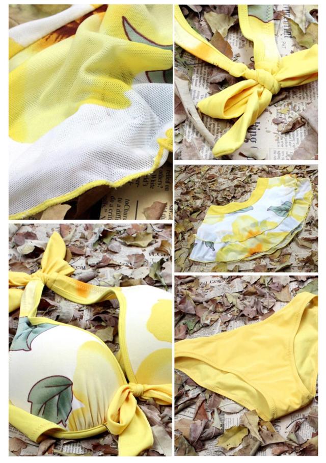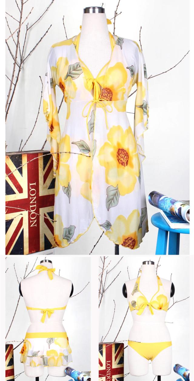 大人気 レディース水着 体型カバービキニ タンキニ セパレート 温泉 ビーチ 岩盤浴 4点セット ホルターネック イエロー M008