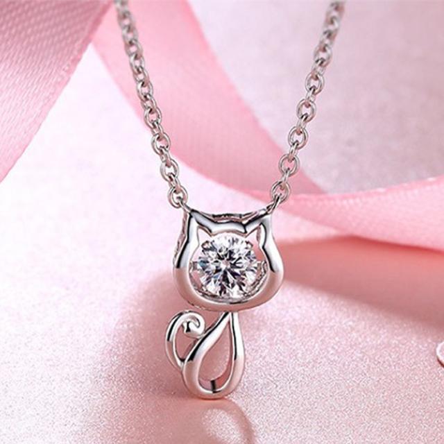 ネックレス レディース 揺れるダイヤ 猫ペンダント ねこ 可愛い プラチナ仕上げ シルバー925 cz 彼女 人気 妻 クリスマスプレゼント