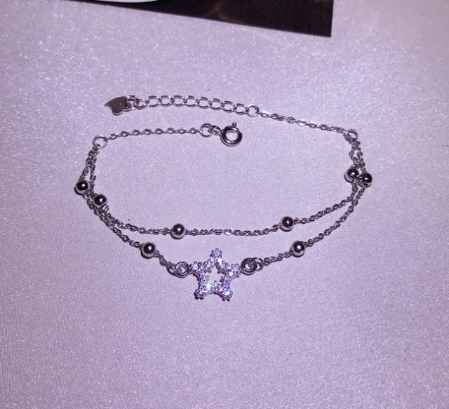 ブレスレット ダイヤ 星型 2連 ボール ブレスレット レディース プラチナ仕上げ シルバー925 プレゼント 彼女 人気 プレゼント