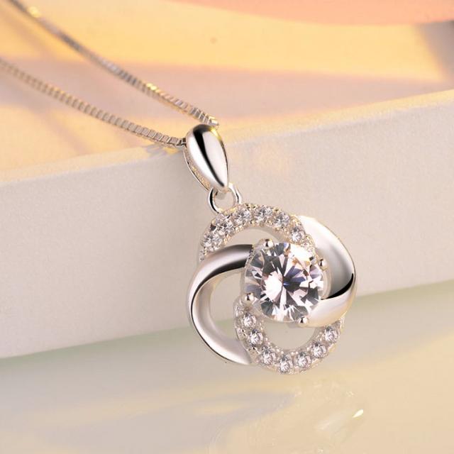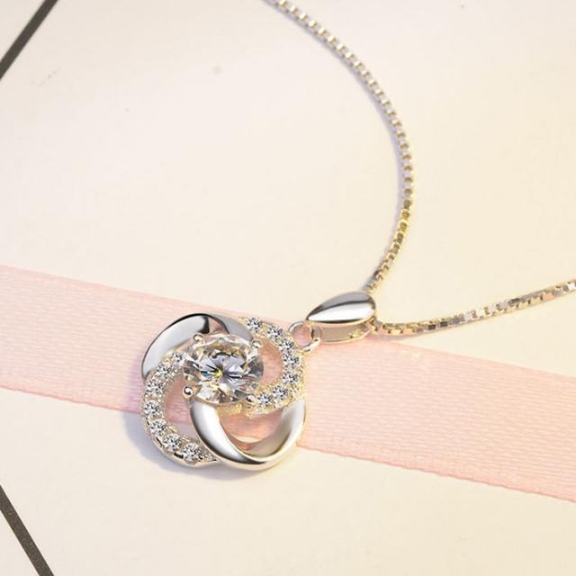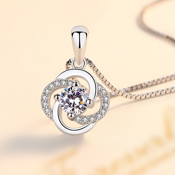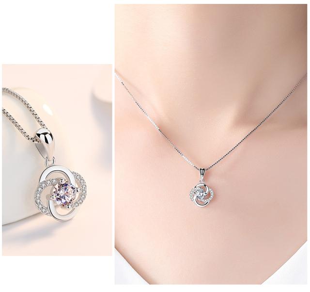 ネックレス レディース 一粒ダイヤ 四つ葉のクローバー お花のネックレス 贅沢15粒 プラチナ仕上げ シルバー925 cz 人気 誕生日 ギフト クリスマスプレゼント
