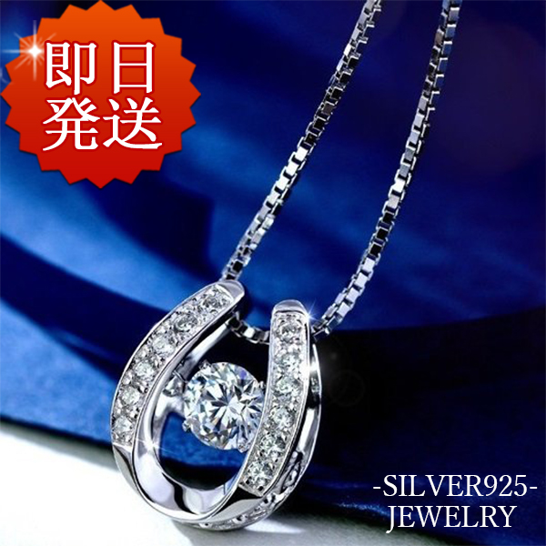 ネックレス レディース 40代50代 馬蹄 ラッキーモチーフ 揺れるダイヤ プラチナ仕上げ シルバー925 20代30代 彼女 嫁 母 娘 クリスマスプレゼント 人気