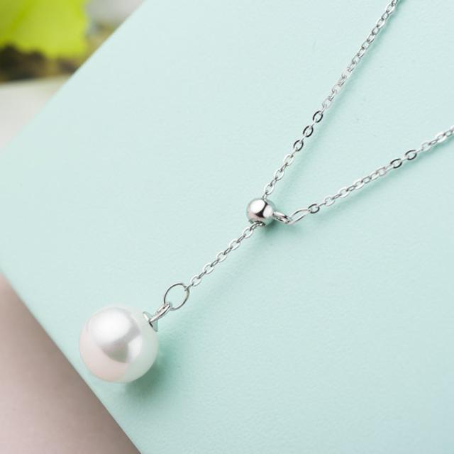 ネックレス レディース 一粒パール 長さ調整可 ペンダントトップ プラチナ仕上げ シルバー925 30代40代50代 人気 女性 クリスマスプレゼント 母の日 誕生日プレゼント お祝い