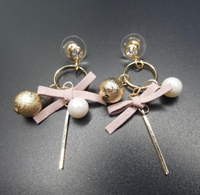 ゆれるピアス リボン パール ゴールドボール 揺れるピアス パーティー ギフト 結婚式 人気
