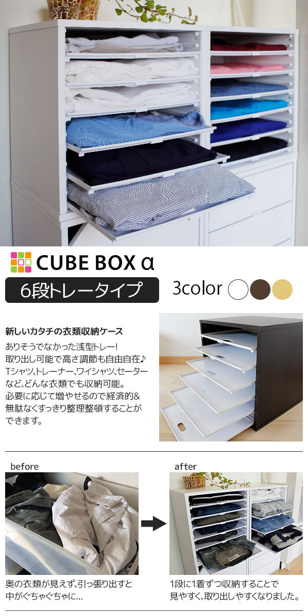 完成品 キューブボックスα 浅型トレー6 衣装ケース 引き出し 衣類収納 チェスト カラーボックス 引き出し キューブボックス 引き出し 衣装ケース 木製 プラスチック トレー おしゃれ ホワイト 白 激安 安い 送料無料