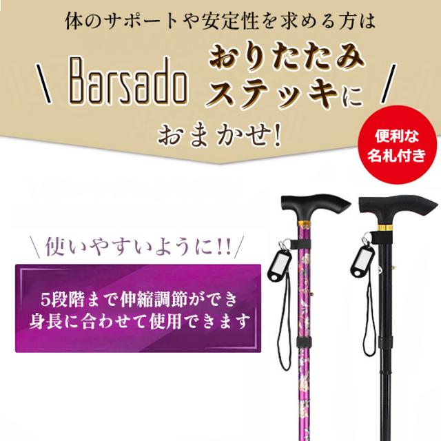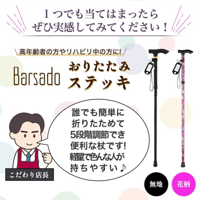 【簡単に折りたたみできる♪5段階調節可能 おりたたみ ステッキ】
