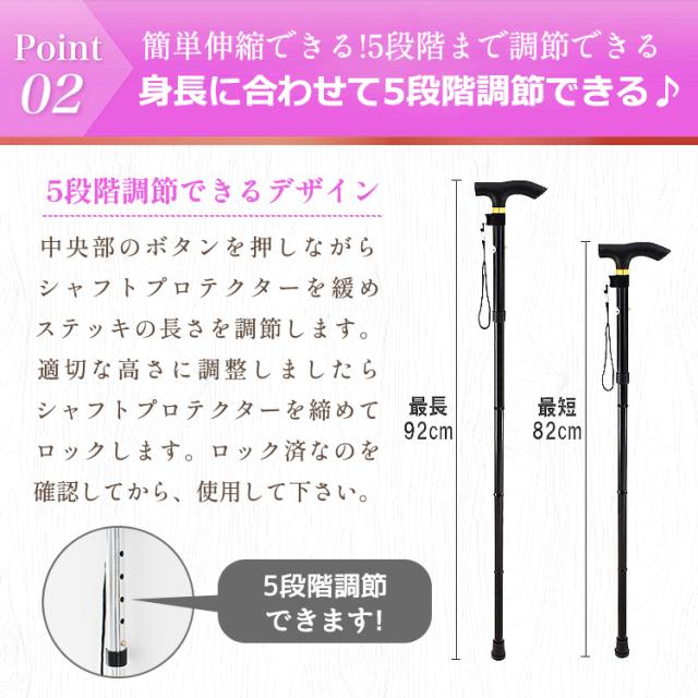 【ポイント2 杖の長さを5段階調節できる】