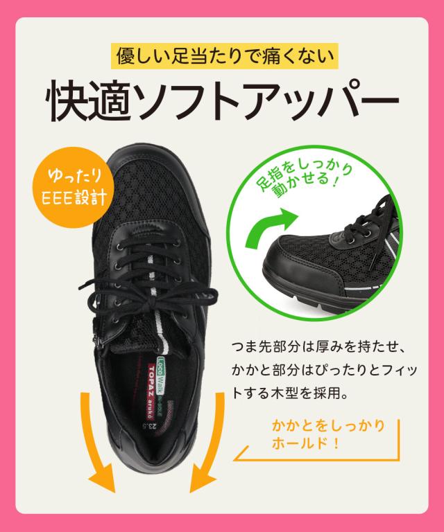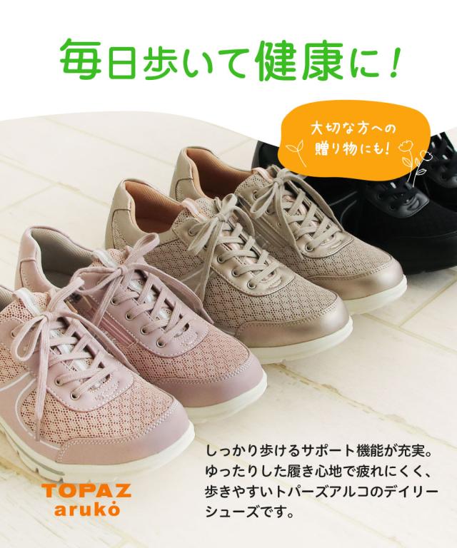 ウォーキングシューズ レディース 通勤 3e 幅広 スニーカー カジュアルシューズ コンフォートシューズ おしゃれ 歩きやすい 軽量 軽い 防滑 疲れにくい 履きやすい 撥水 トパーズ 靴 母の日 黒 ピンク 小さい 大きいサイズ TOPAZ aruko 7405